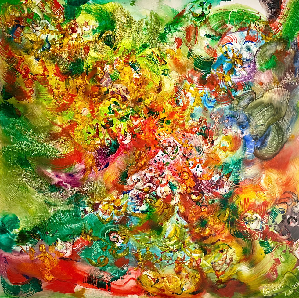 Pollack was a prolific painter of surrealistic art using oil on masonite board to create incredibly multi-layered artwork. The layering of faces and his well-known "Poglin" creatures create even larger faces and landscapes (Pollack coined the term "Poglin" as a mash-up of "Goblin and "Pollack"). One has to spend only a few moments with his work to realize that there are thousands of things to see in each of his masterworks.